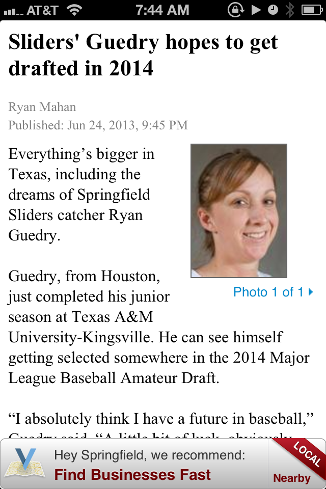Anyway, this was a nice little story about a local wooden bat league player who was making really good on his opportunities. HE was named Ryan.