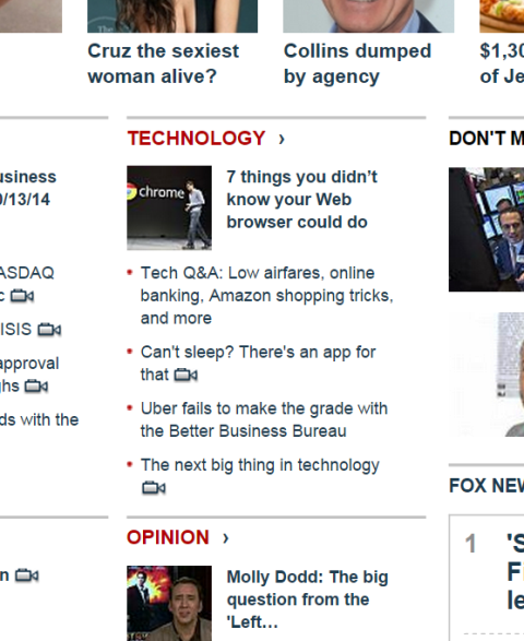 So the other day I was catching up on news stories about Ebola, ISIS, the 2014 mid-term elections, just your usual run-of-the mill cheerful daily lift-you-up kind of stuff. For some reason I found myself on FoxNews. While I was scanning down the page, I saw a small widget talking about “7 things you didn’t know your Web browser could do“. I thought “Ah HAH!” That’s right up my alley. I’ll have to check that out and see what I can pick up real quick.