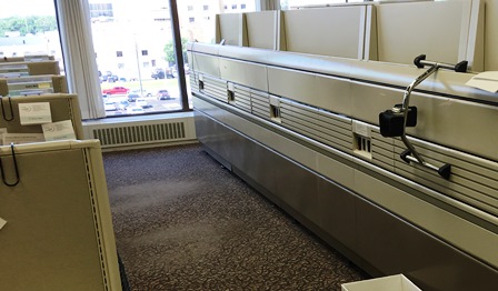 The other day, a few of the girls in the cubicles next to this wall were standing and talking to each other as I ambled by so I stopped. I said, “I’m sorry, but can someone tell me wheat in the world is that thing hanging there on the wall of your aisle?” One of them chirped up and explained it was an under desk foot cycle. I said, “I see! So, you just store it there when it’s not in use right?” She laughed and said, “Exactly!”
