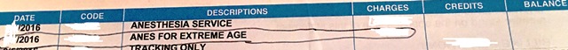 And even if, the verbiage in the haute-tauty anesthesia world calls for EXTREME AGE, do ya think ya might ask someone in the billing department to “pretty it up” a bit before throwing it out to the unwashed masses?
