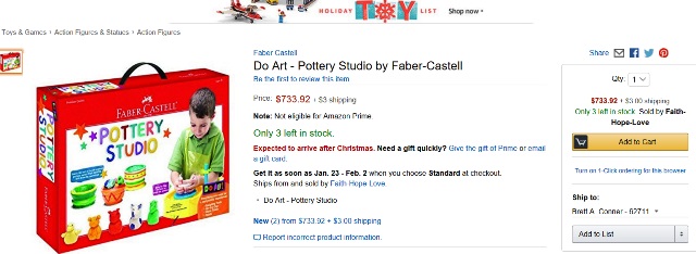 Yeah, that’s right. This Pottery Studio with a child on the front that is rated for kids aged 6-12 is listed on Amazon for $733.92! Now, this was a momentous occasion for this Eeyore because by golly I put my hoof down and said, “Heck NO!”