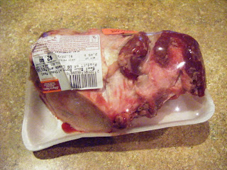 While shopping for the soup bone, it occurred to me that I had no idea what a soup bone was or how to pick one out. Was it pork, beef? I always knew there was a section of the meat cases that housed the unmentionables, i.e. pigs feet, ears, joints, and organs. However, I never spent much time perusing that area due to the gross out factor.