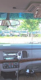 Ok, this one looks pretty stupid, I’ll give you that. But, it serves its purpose. It’s my cell phone hands-free system in my car. Can anyone say “Redneck Onstar”? Passengers do kind of find the wire hanging in front of their faces a bit annoying I guess.