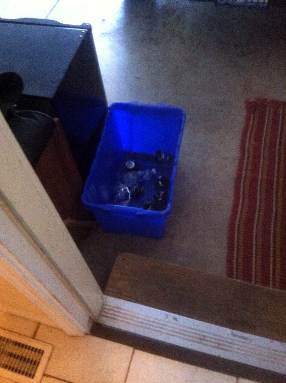 The main recycling bin that actually goes out to the curb could handle this piece of recycling but alas, it is a full 7 feet from the indoor one.