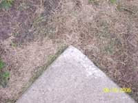 My plan worked well at first. What I decided to do was to use Round-Up Extreme™ on areas that I couldn’t reach with the riding mower. These areas included the grass around trees or corners on my patio. As you can see from my efforts to cut all the grass right up to the corners of my patio, a new method was sorely needed. The first patio corner on the top below required my learning to remove and replace a 22″ riding lawn mower blade.